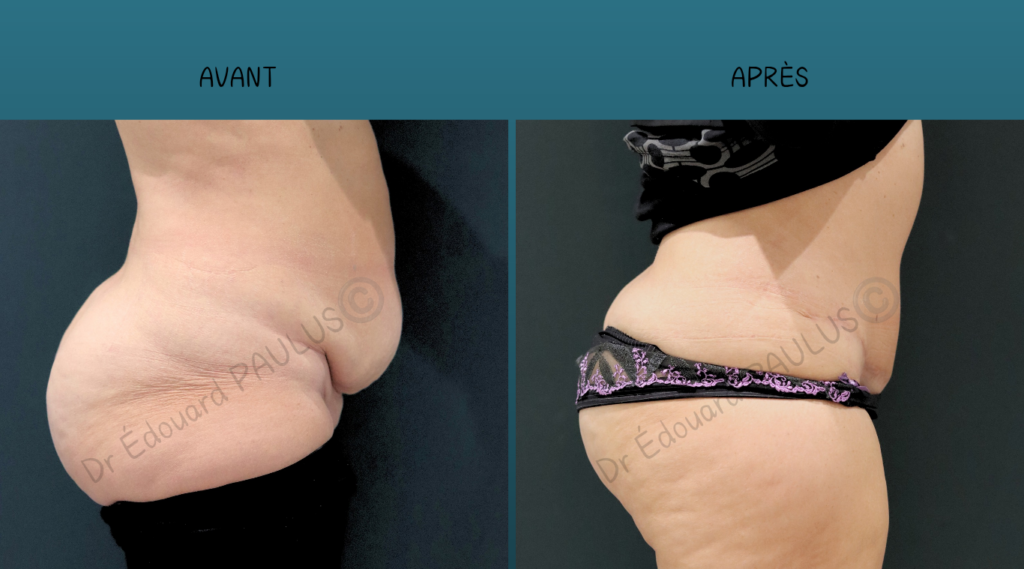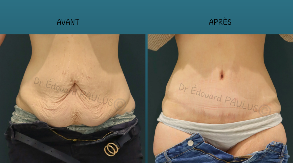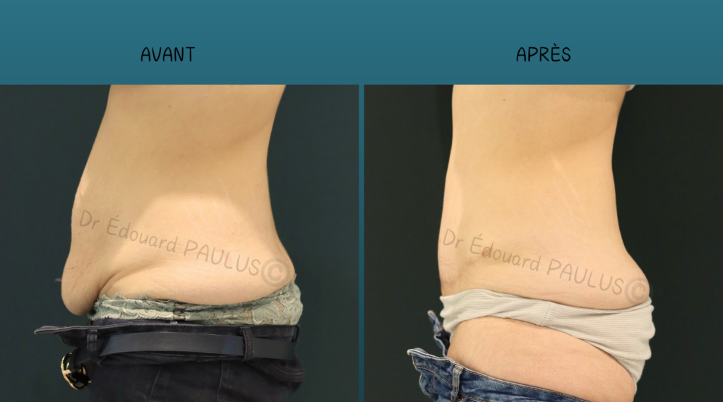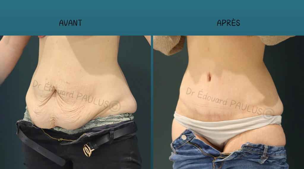 Après l’intervention, le ventre est œdématié. Il retrouvera un aspect naturel en 1 à 3 mois avec un aspect définitif à 1 an.