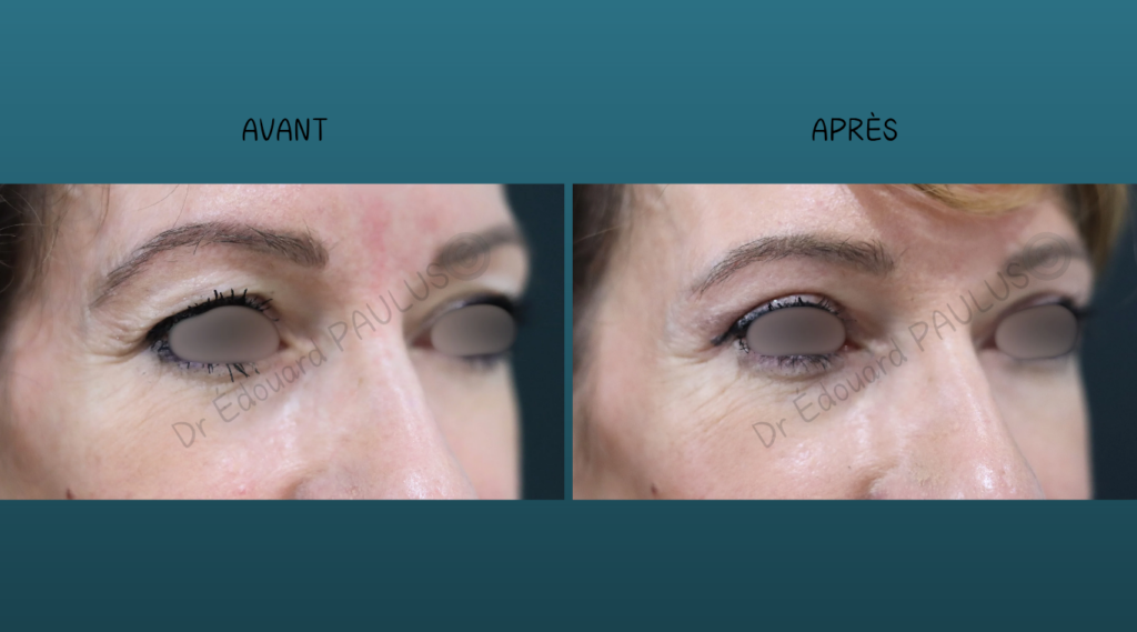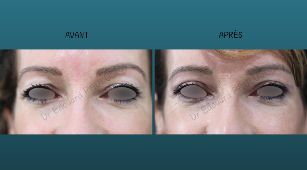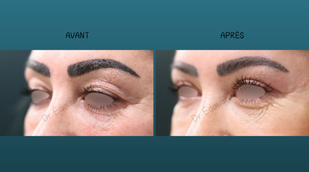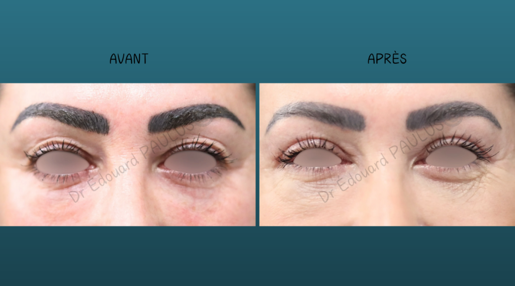 Après l’intervention, les yeux seront œdématiés. Le masque de froid sera mis en place. Les paupières retrouveront un aspect naturel en 7 à 10 jours avec un aspect définitif à 3 mois.